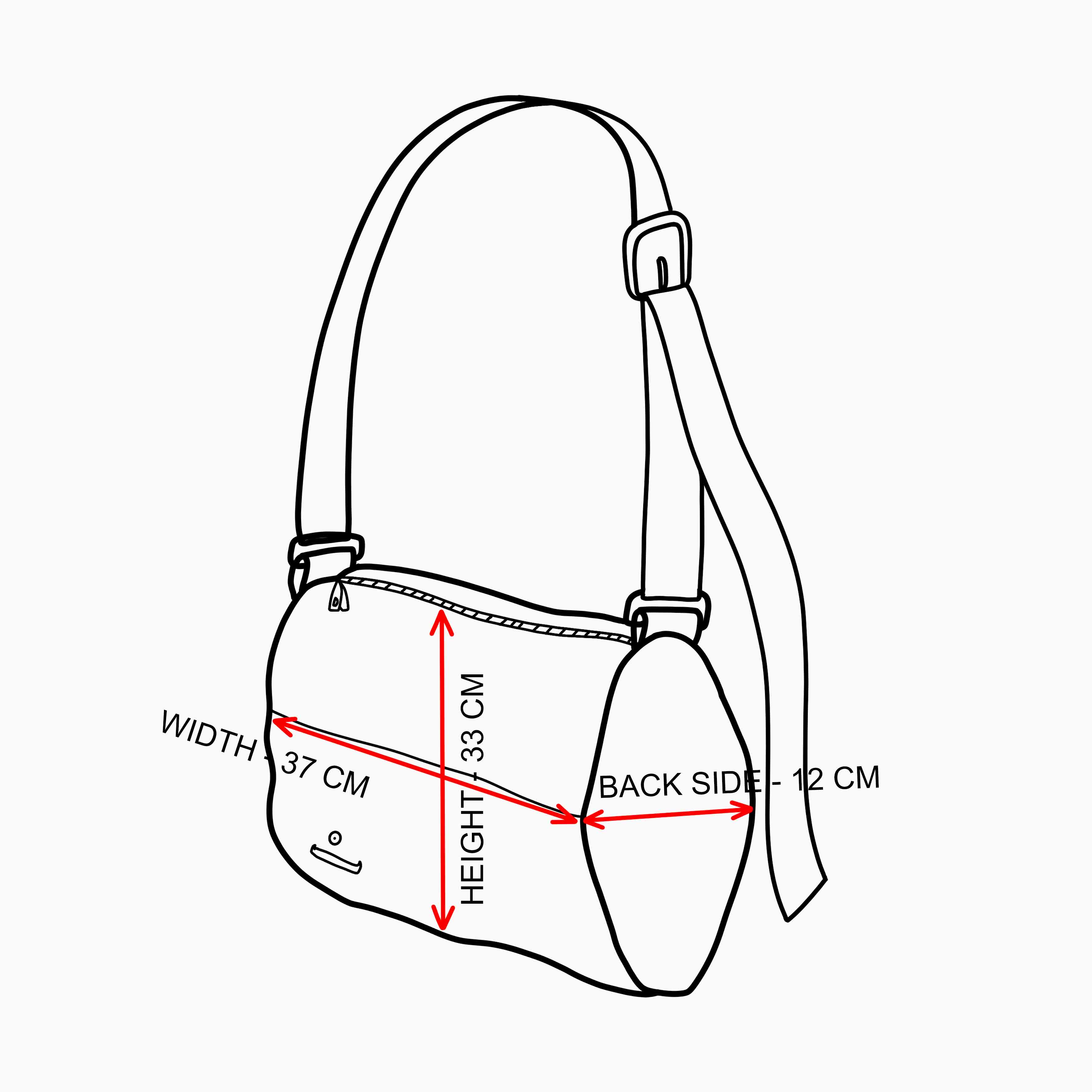 Bag size: height - 33 cm, width - 37 cm, back side - 12 cm.