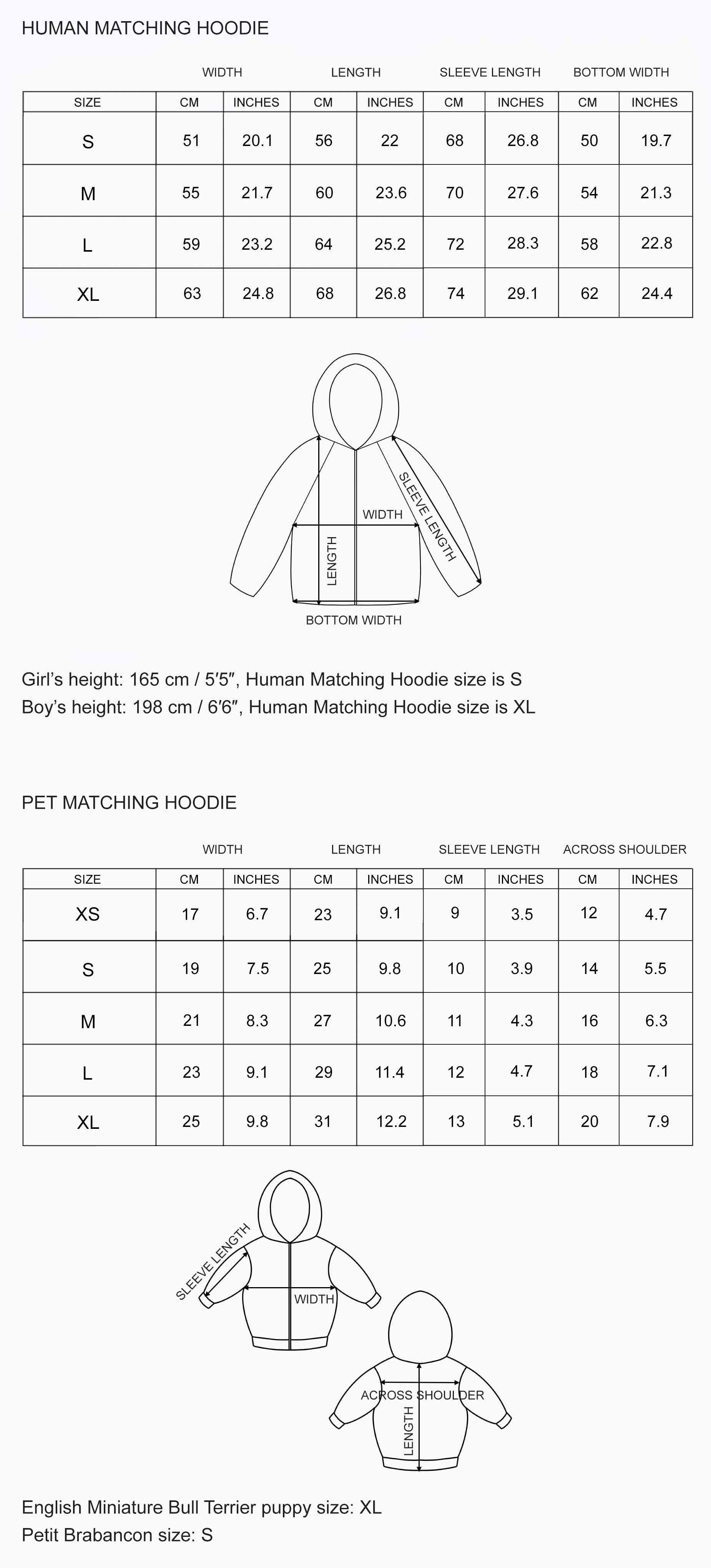 Hoodie for small dogs, no more than 32 cm / 12.6 inches in height and 47 cm / 18.5 inches around chest.