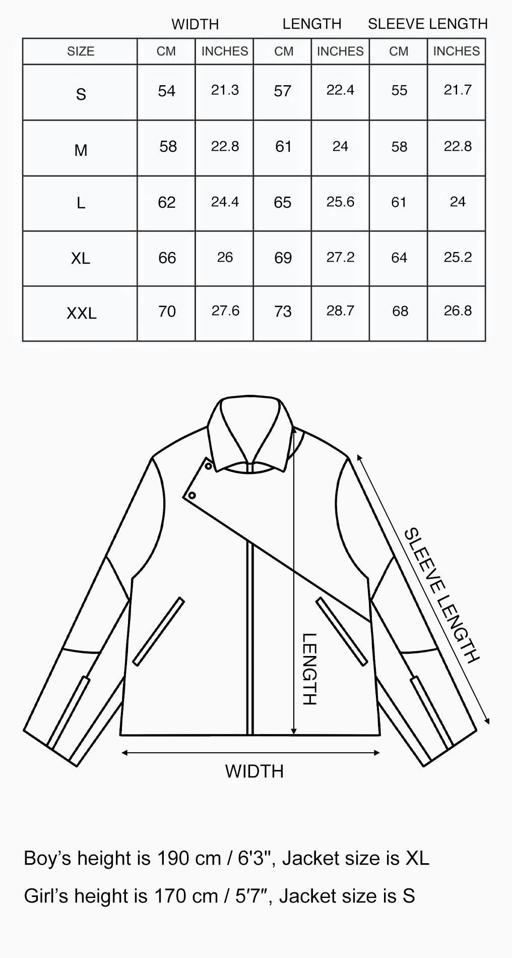 Boy’s height is 190 cm / 6'3", Jacket size is XL -