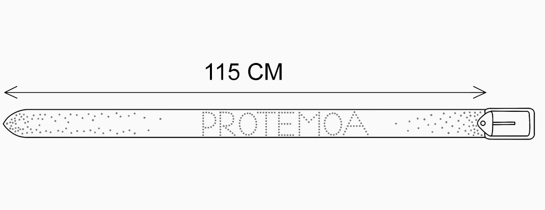Genuine black leather belt with the "Protémoa" logo and metallic rivets throughout. Features an adjustable metal pin-buckle fastening.